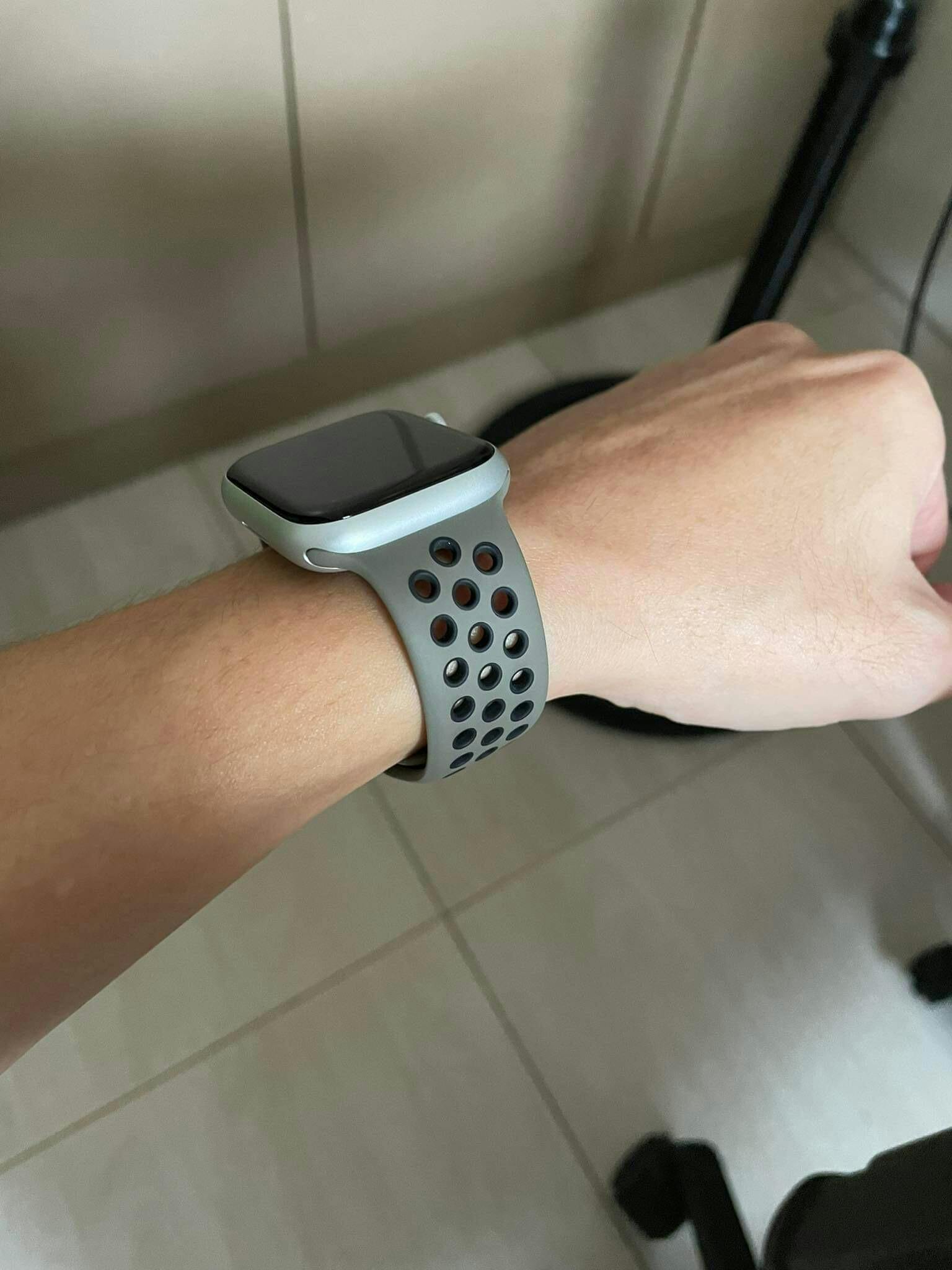 Made from a custom high-performance fluoroelastomer with compression-molded perforations for breathability, the Nike Sport Band is durable and strong, yet surprisingly soft. The smooth, dense material drapes elegantly across your wrist and feels comfortable next to your skin. An innovative pin-and-tuck closure ensures a clean fit.